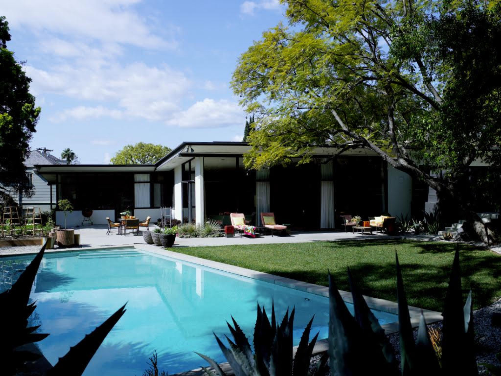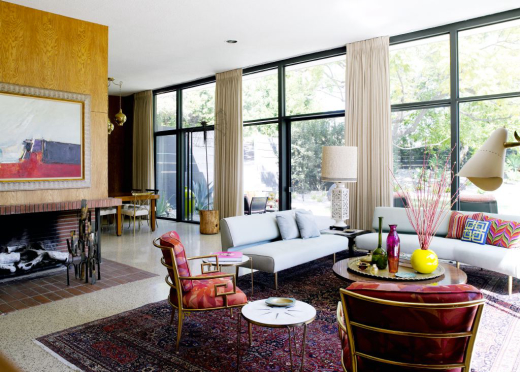 Designed in 1949 by Case Study architect J.R. Davidson, the well-appointed surroundings of the Schapiro House feature Turk’s vibrant textiles and signature bold patterns throughout, exemplifying the optimistic spirit and effortless glamour of her California Modern lifestyle and namesake brand.