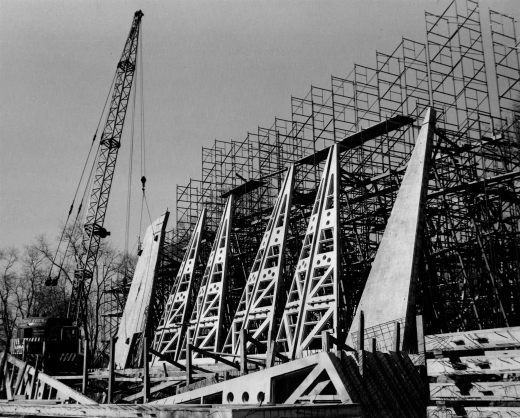 … when you’ve plodded through it all methodically from the beginning—the human needs, the floor plan, the economics, the structure—you still must get an emotional reaction. The answer is to merge art and architecture. At Stamford we did it by bringing in color and the stained glass design. I would have liked to get sculpture, too. I don’t mean going out to buy it, but sculpture which grows out of the architecture. The future belongs to the integration of architecture, painting, sculpture and landscaping—to what has been called ‘total architecture’.[1]