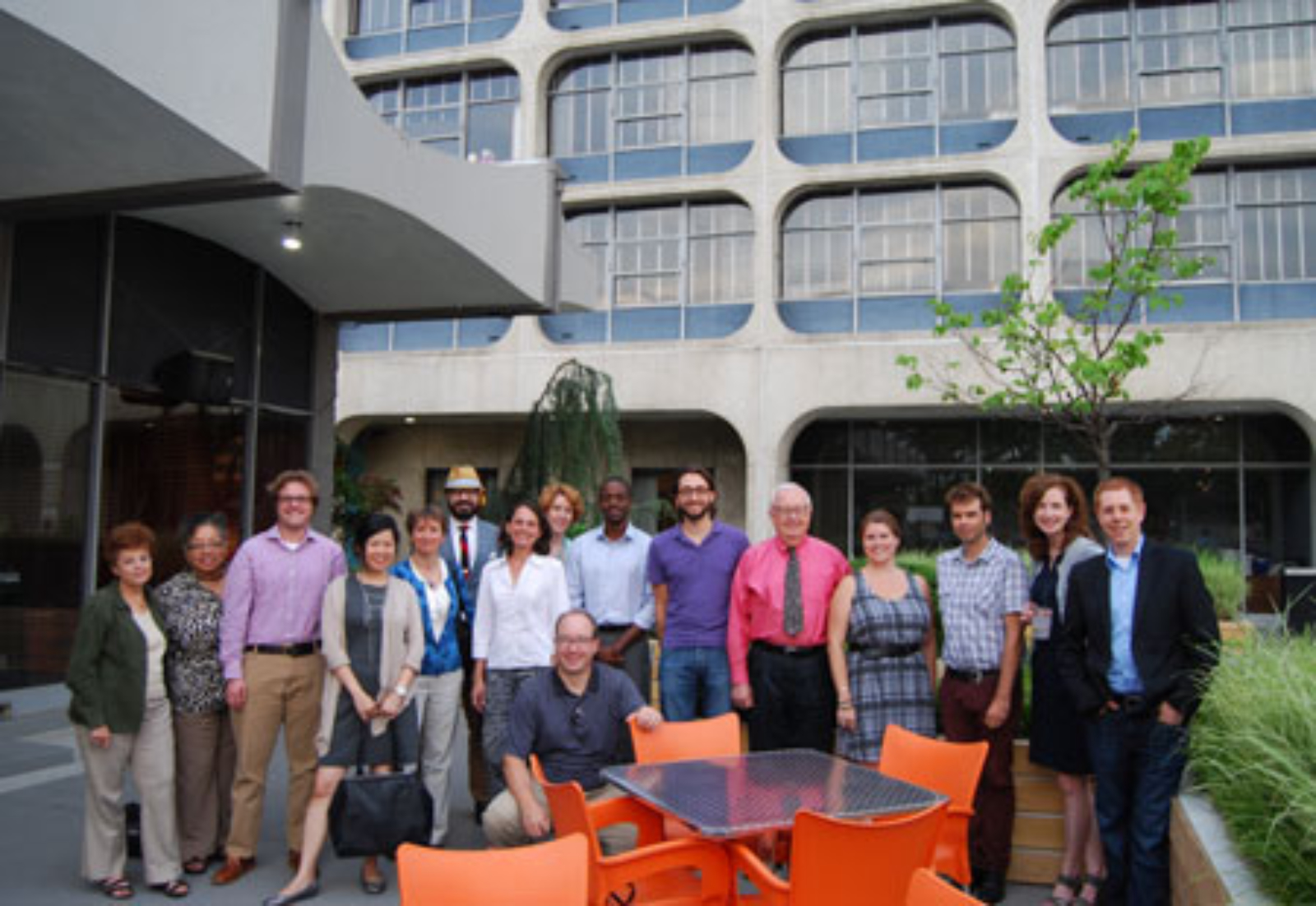 Photo (left): July Chapter meeting attendees in front of the Capitol Skyline Hotel designed by Morris Lapidus, 1961. Photo Credit: Colin MacKillop