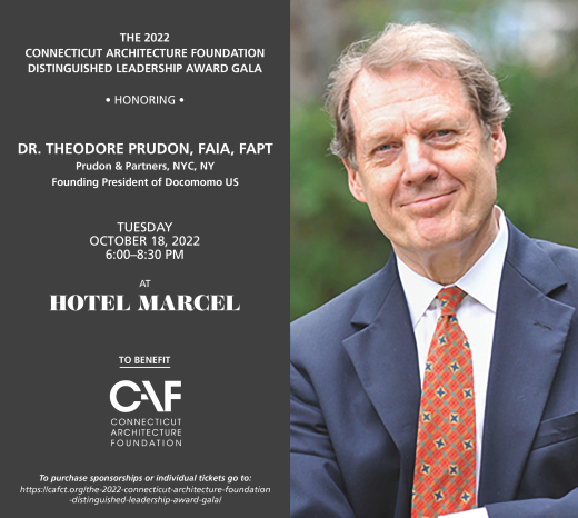 Prudon was also honored with a Distinguished Leadership Award by the Connecticut Architecture Foundation (CAF). CAF was established in 1978 by the Connecticut Society of Architects (Connecticut Chapter of the American Institute of Architects) as an independent organization to raise and distribute funds. It works to raise public awareness of, and expectations for, architecture and the built environment. The Distinguished Leadership Award was instituted in 2003, the year it was bestowed upon Richard Levin, then Yale University president.