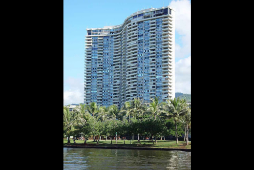 The Marco Polo Apartments (1971), with 573 units, was the largest condominium building in Hawaii at the time. Charles “Ty” Sutton and the firm of Lemmon, Freeth, Haines, Jones and Farrell adapted the sinuous, rippling curves of Oscar Niemeyer's dance hall at Pampulha to a high-rise building. Developer-owners Reed and Martin, the builders of the Hawaii State Capitol, directed the architects to design the largest, most elegant condominium in town, with rounded shapes rather than a rectilinear box.