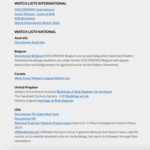 The culmination of over two years of intensive work, over 20 sites have already been added. In addition to identifying houses threatened by the wrecking ball or those deteriorating rapidly due to of deferred maintenance or vacancy, the list also include stories of modern masterpieces that have been demolished, and success stories about houses that have been saved.