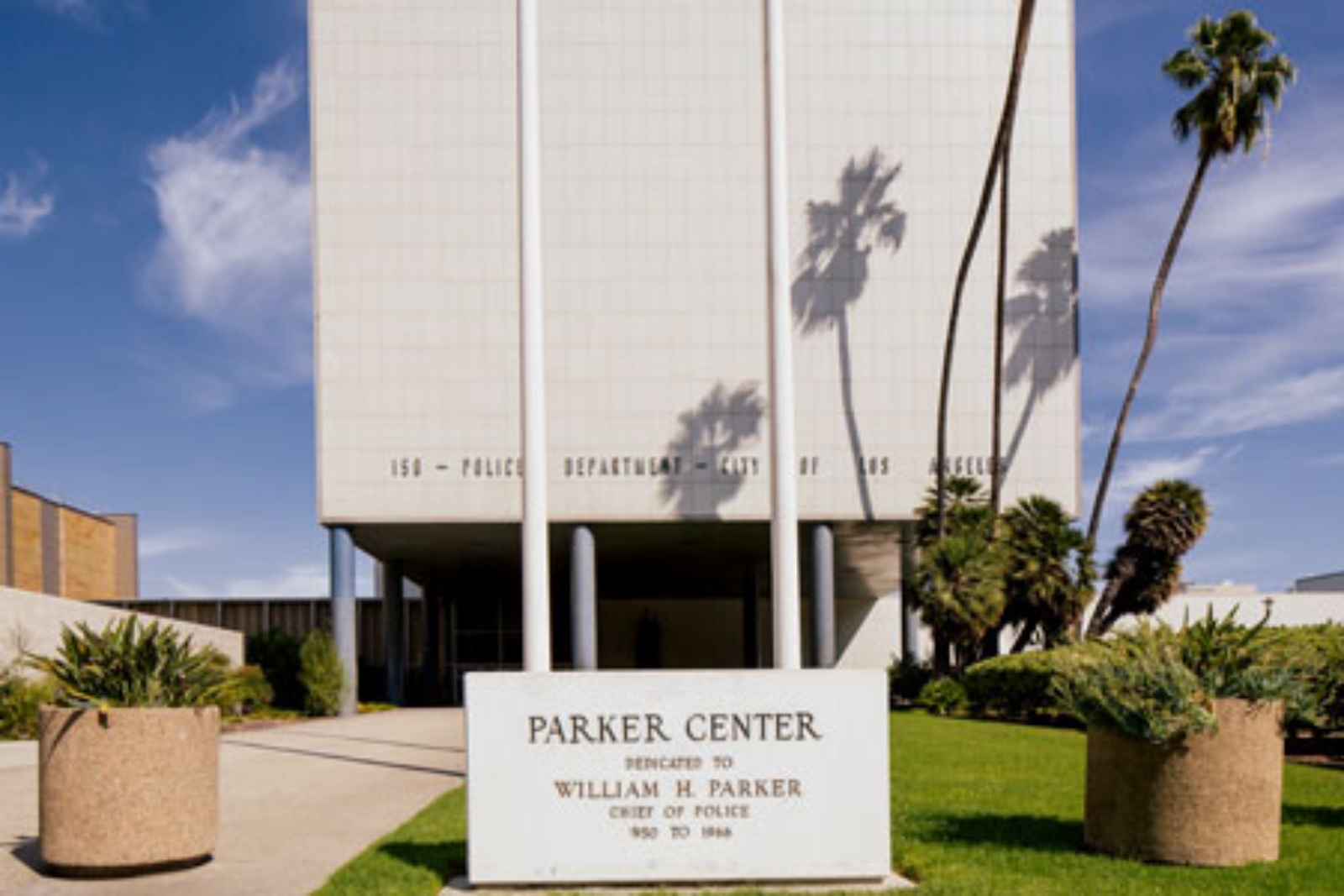 When Parker Center was built in 1955, the eight-story, International Style building with integrated art and landscaping components was a significant postwar addition to the Los Angeles Civic Center. Designed by Welton Becket & Associates and J. E. Stanton with a landscape by Ralph E. Cornell, Parker Center was then known simply as the Police Facilities Building (renamed in 1966 for Police Chief William H. Parker).