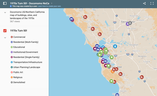 Do you know of a great '70s site in Northern California that isn't mapped yet? Email the Northern California chapter at info@docomomo-noca.org or fill out the form located below the map to submit a site.