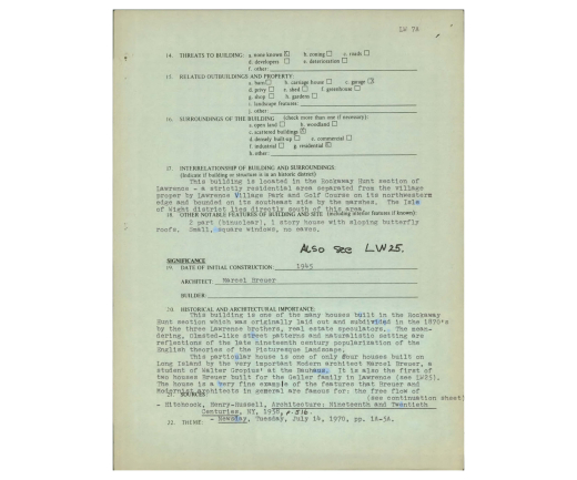 Marcel Breuer's first binuclear house, Geller I in Lawrence, New York has been demolished in the dead of night. Geller I is largely considered the project that propelled Breuer to private practice in New York and prompted the Museum of Modern Art to commission Breuer to design an exhibition house in the museum’s courtyard entitled The House in the Museum Garden in 1949. The following text was written in the last few days as Docomomo US and our colleagues were working to make this concern public. We are saddened by such an unnecessary loss and will continue to post updates as they are known.