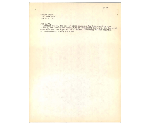The Geller House and Breuer’s other residential designs of the 1940s and 1950s were both extremely innovative and widely influential. The interest and demand for modern family dwellings post-World War II prompted the Museum of Modern Art to commission Breuer to design an exhibition house in the museum’s courtyard entitled The House in the Museum Garden (1949), “a country home for the commuter, intended to be built by any contractor.” The exhibition drew over 70,000 visitors and transformed the public’s idea of a new type of home for the modern American family.