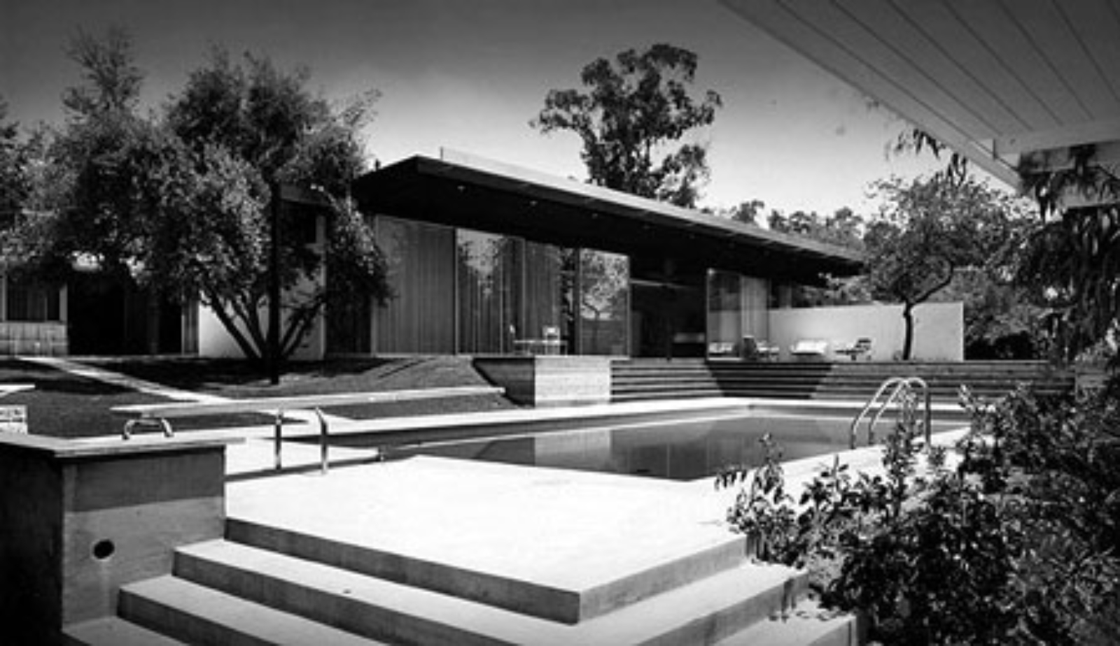 Designed in 1955, the Kronish Residence was one of the largest Neutra residential projects. Built for tract developer Herbert Kronish and his new English bride, the design included unusual requirements such as mirrors on the ceiling of Mrs. K’s dressing room. Rare Carrara Glass lines the walls of the master bath, and there are many other unique features.