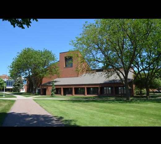 Whitwam once expressed his enjoyment of designing churches and was quoted saying that “you get a chance to express yourself a little more.”(5) In the mid-1950s, he worked on an addition for his own church, First Congregational in Sioux Falls. He also designed for Lutheran and Latter-Day Saints churches in Sioux Falls in the 1960s and worked on four commissions for churches across the state line in Luverne, Minnesota. In 1978, for Augustana College (his wife Elissa’s alma mater), he designed the Chapel of Reconciliation building that the Lutheran-affiliated campus dedicated in October 1981. In recent years, campus pastor Rev. Ann Rosendale has expressed appreciation for the way that the earth tones of the building and sanctuary reflect the South Dakota landscape and for the way roof design slants in multiple directions, visually connecting the semi-central chapel to the academic disciplines studied around campus. Whitwam also has said that that roof design was intended to “create grandeur without a box,” especially when adding a campanile was outside the project budget.(6)