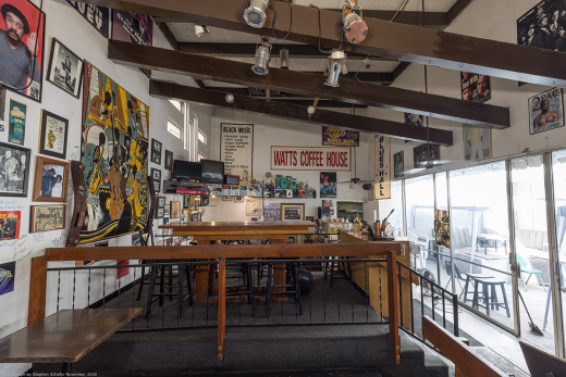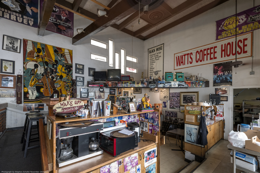 She’s referring to the 1965 Watts Rebellion, a six-day uprising that culminated decades of underinvestment, discrimination, and other forms of systemic racism. The roots of the Mafundi building date back to the months following the unrest, when neighborhood youth converted an abandoned building into a performing arts center. The Watts Happening Coffee House blended food, music, theatre, writing, visual art, health fairs, book clubs, and more to foster Black empowerment and self-worth.