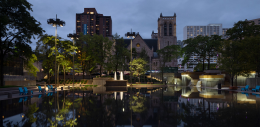 “Peavey Plaza was extremely vulnerable to removal while its high significance as urban landscape was well-known. The reconfiguration for accessibility, safety, and improved water management were coordinated with care to retain Friedberg’s design elements.”